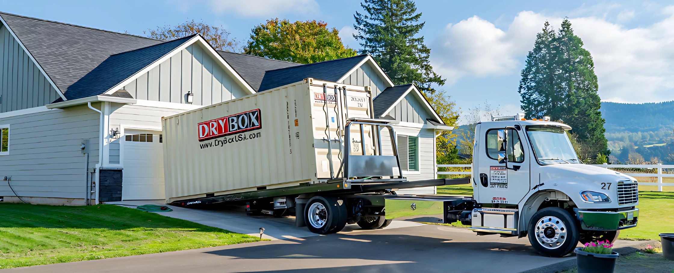 Dry Box delivers a storage container rental to a suburban home in Washington state